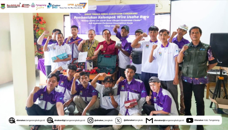 inas Tenaga Kerja (Disnaker) Kabupaten Tangerang menggelar kegiatan penyerahan bantuan peralatan usaha las listrik kepada warga Desa Cibugel, Kecamatan Cisoka, pada Kamis (6/11/2025).